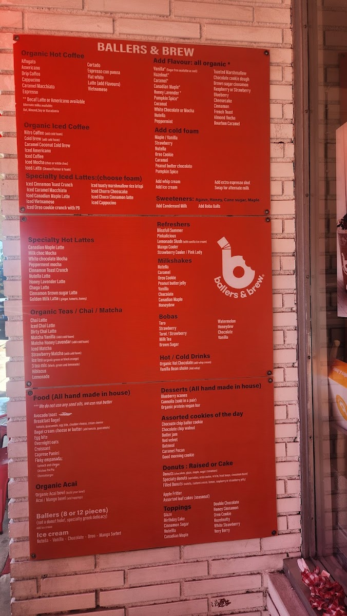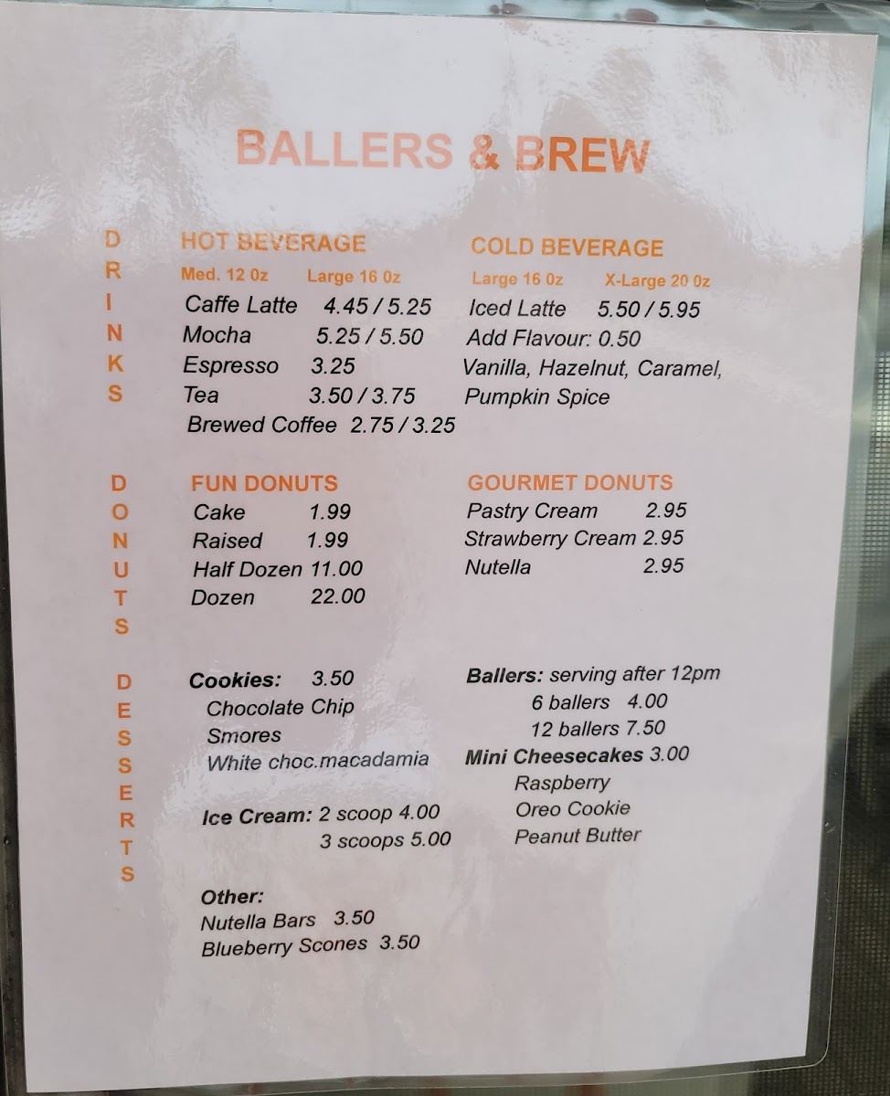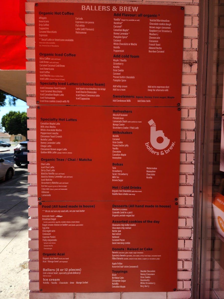 Overall, Ballers & Brew offers an extensive menu that combines quality ingredients with innovative flavors, making it the perfect spot to relax and enjoy a delicious beverage, snack, or dessert. Whether you're a coffee lover, dessert connoisseur, or someone who just wants a fun treat, you'll find something to satisfy your cravings here.